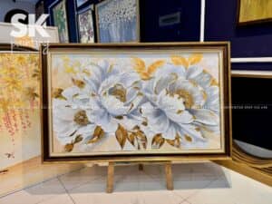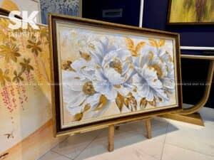 Tranh sơn dầu luôn có một sức hút đặc biệt bởi chiều sâu màu sắc, độ bền và tính nghệ thuật vượt thời gian. “Bạch Kim Hoàng Hoa” không chỉ mang đến vẻ đẹp sang trọng mà còn chứa đựng thông điệp về sự thanh khiết, thịnh vượng và vẻ đẹp vĩnh cửu. Đây là một trong những bức tranh đẹp thích hợp để trưng bày trong không gian hiện đại, góp phần nâng tầm thẩm mỹ và phong thủy cho ngôi nhà.