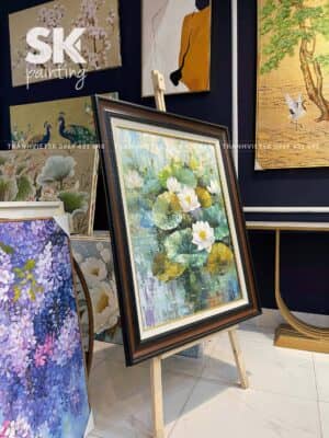 Đặt bức tranh sơn dầu này tại phòng khách sẽ biến nơi đây trở thành điểm nhấn nghệ thuật sang trọng. Sự kết hợp của sắc trắng tinh khôi và ánh vàng sang trọng giúp không gian bừng sáng, đồng thời mang lại cảm giác gần gũi thiên nhiên. Đặc biệt, trong phong thủy, hình ảnh hoa sen còn mang lại sự may mắn, an yên và thu hút năng lượng tích cực.