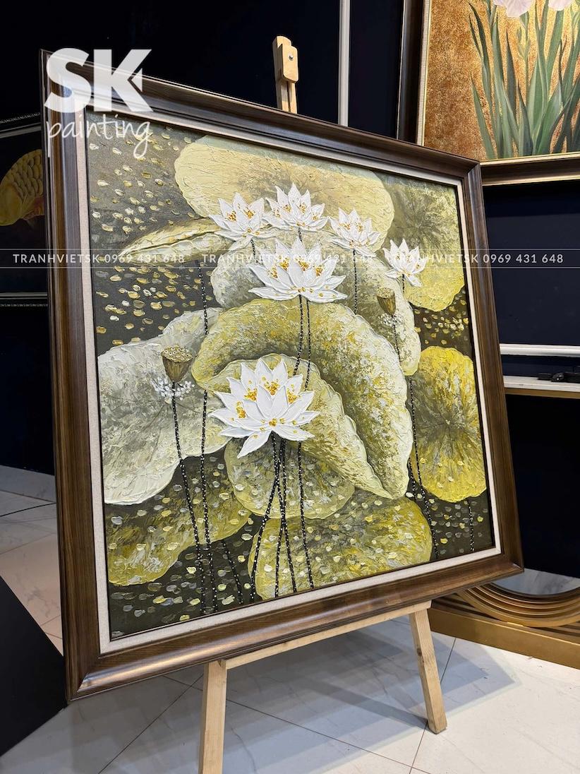 Bạch Liên Hạ Chí – lòng tranh 100x100cm