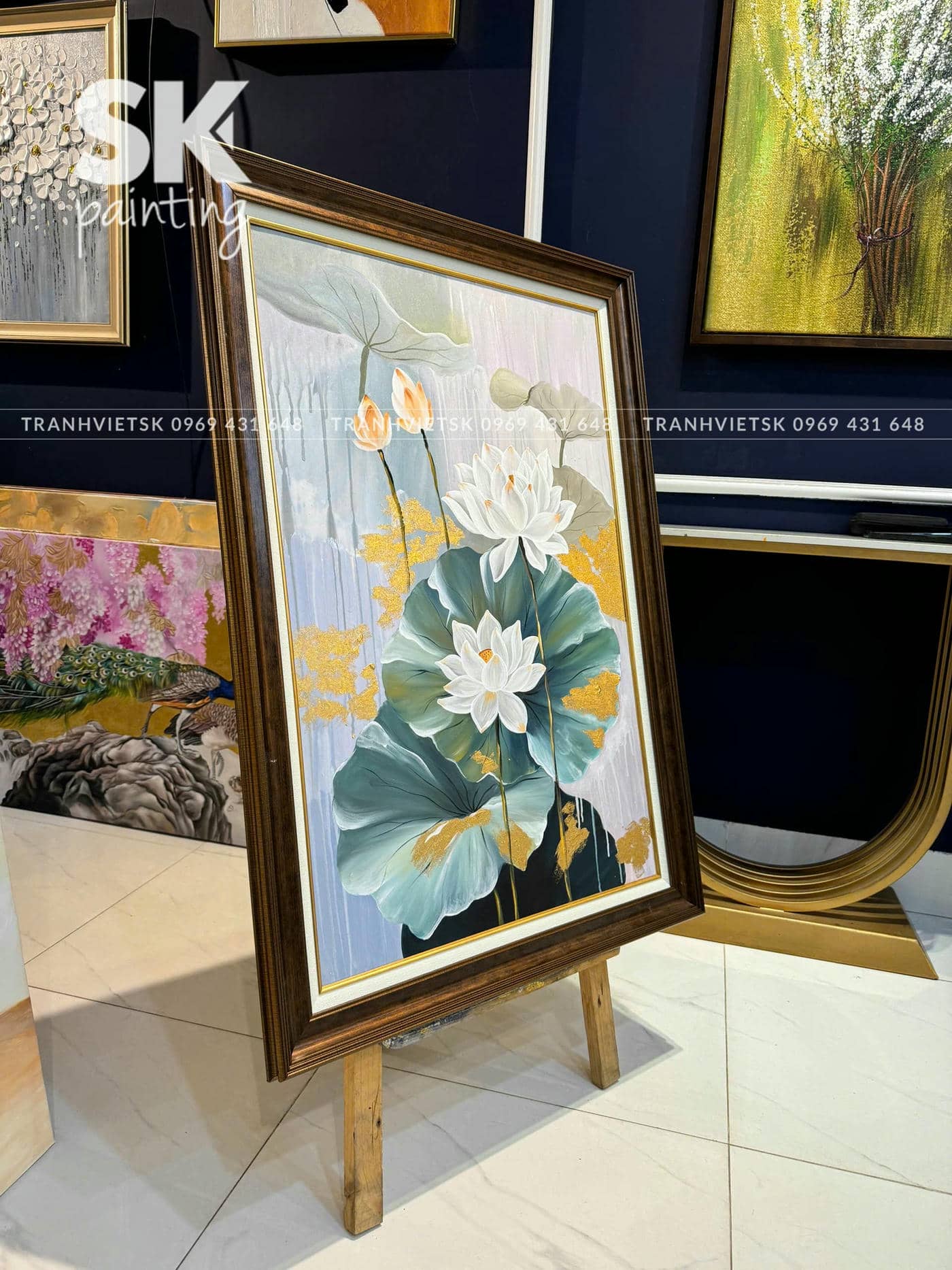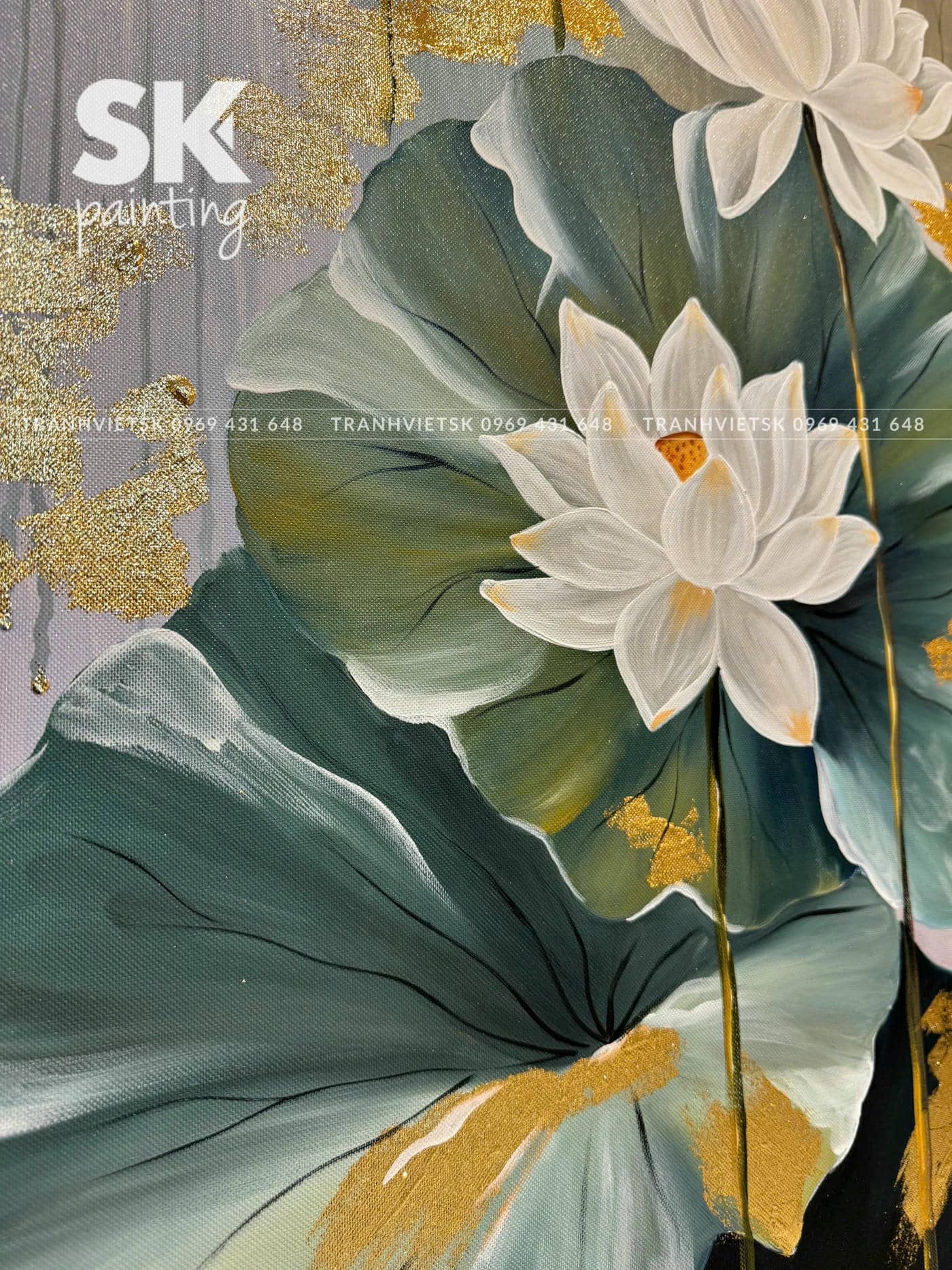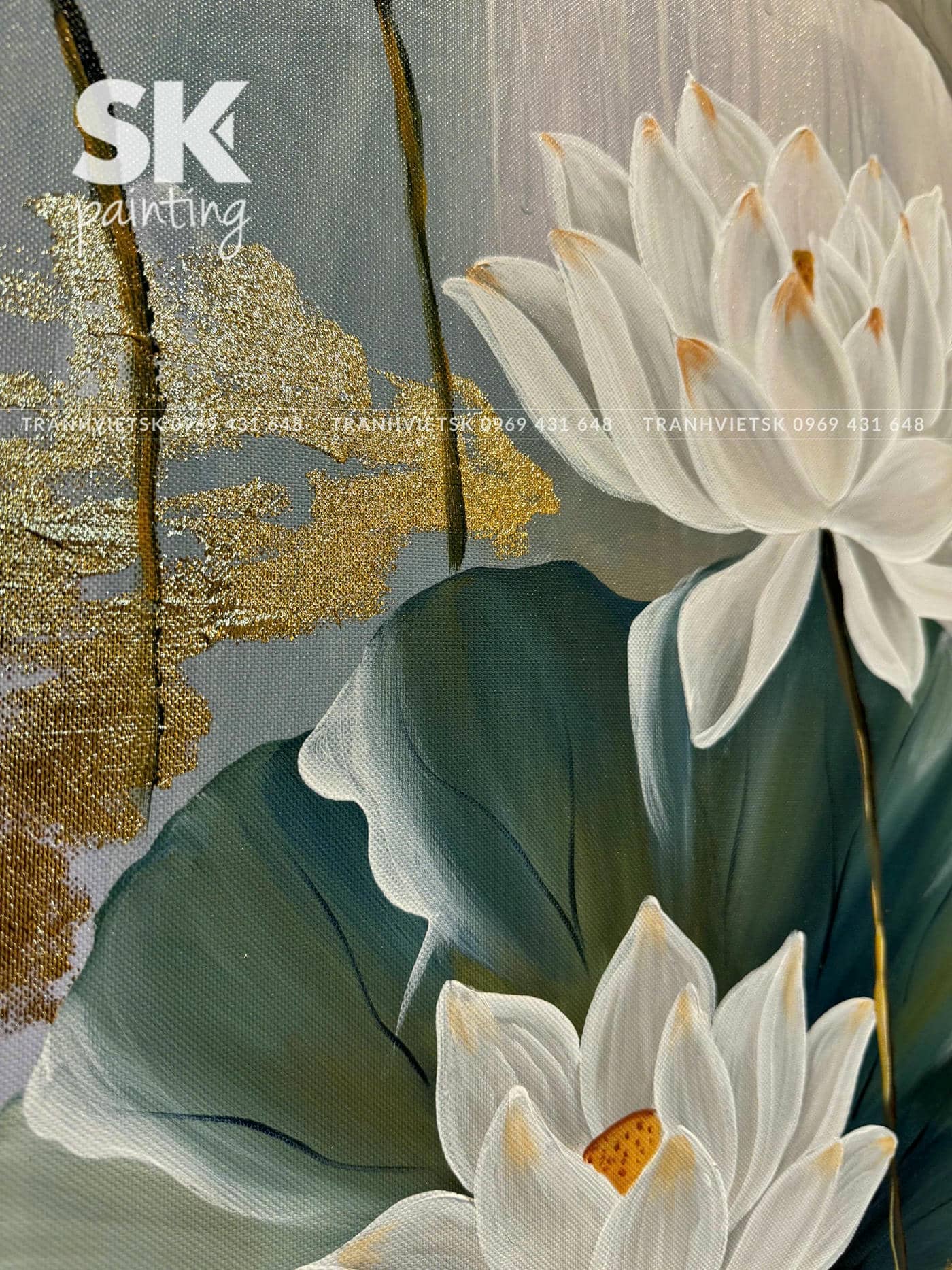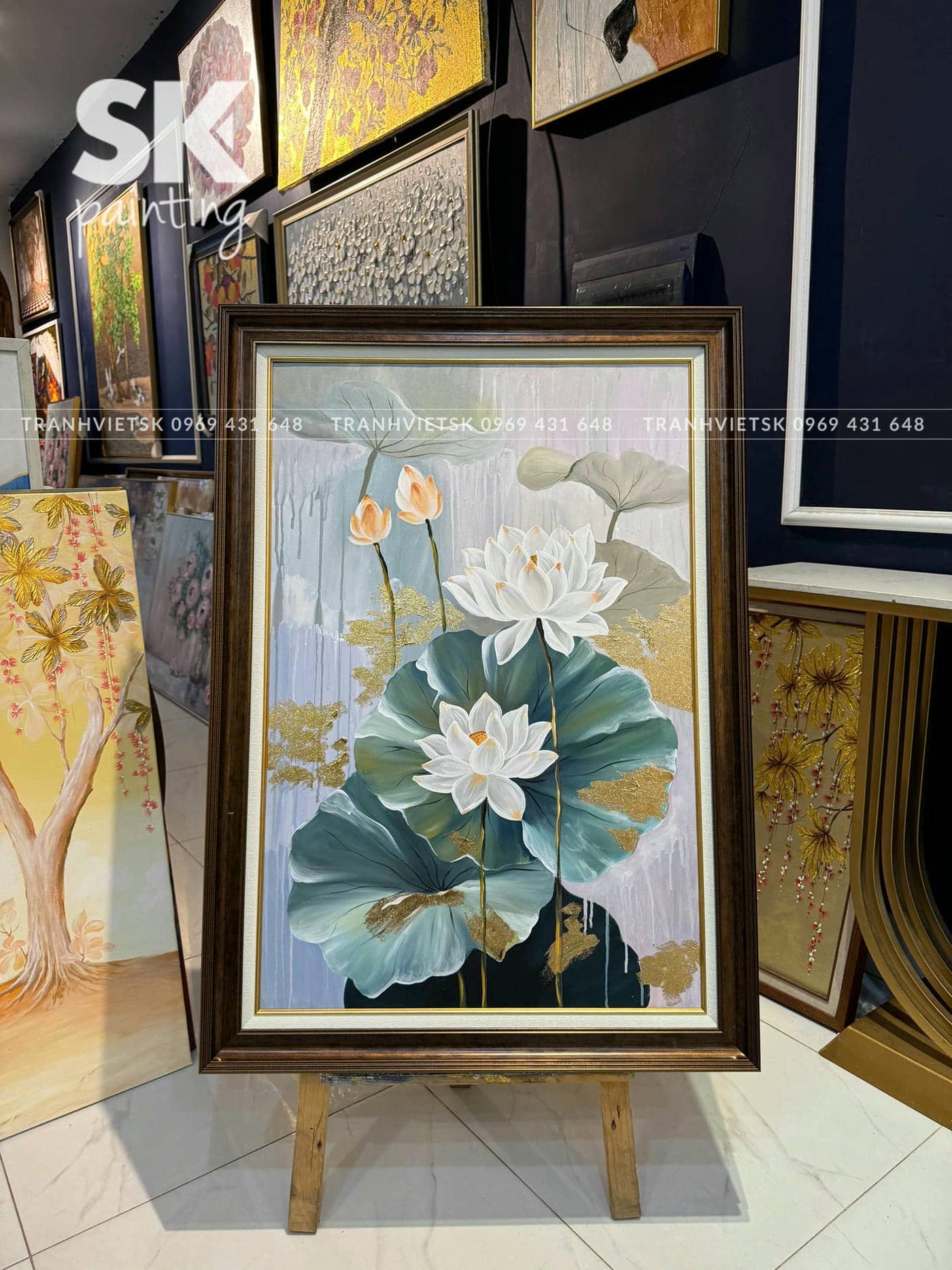 Bạch Liên Kim Vượng – lòng tranh 60x90cm