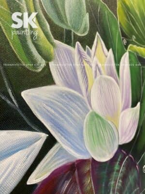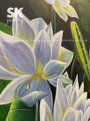 3. “Bạch Liên Thanh Hoa” – Bức tranh sơn dầu hoàn hảo cho không gian sống thanh lịch và sang trọng