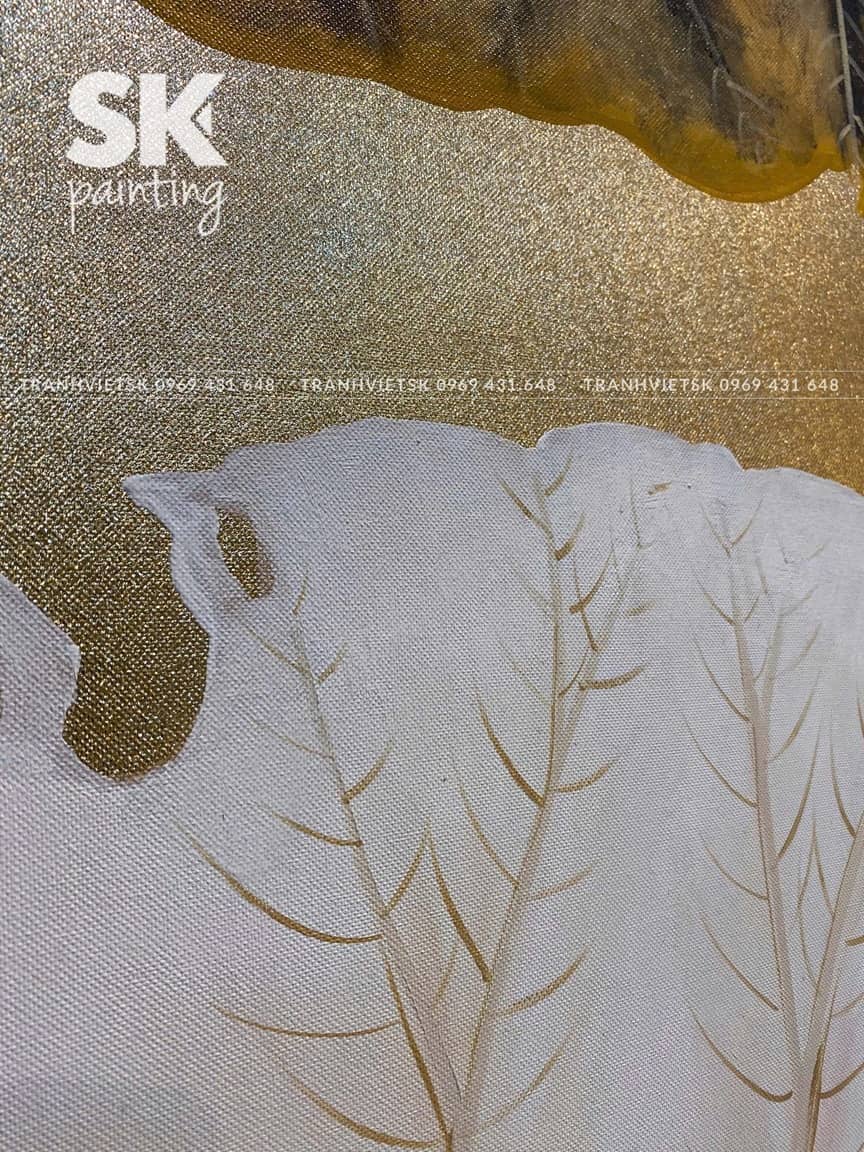 Bạch Hồng Kim An - tranh dát vàng lá Ý 24k - lòng tranh 60x90cm