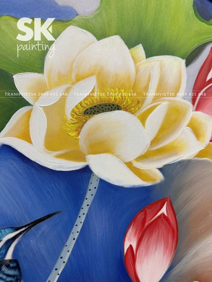Tranh được vẽ hoàn toàn bằng tay 100% bằng sơn dầu/ acrylic Pebeo của Pháp