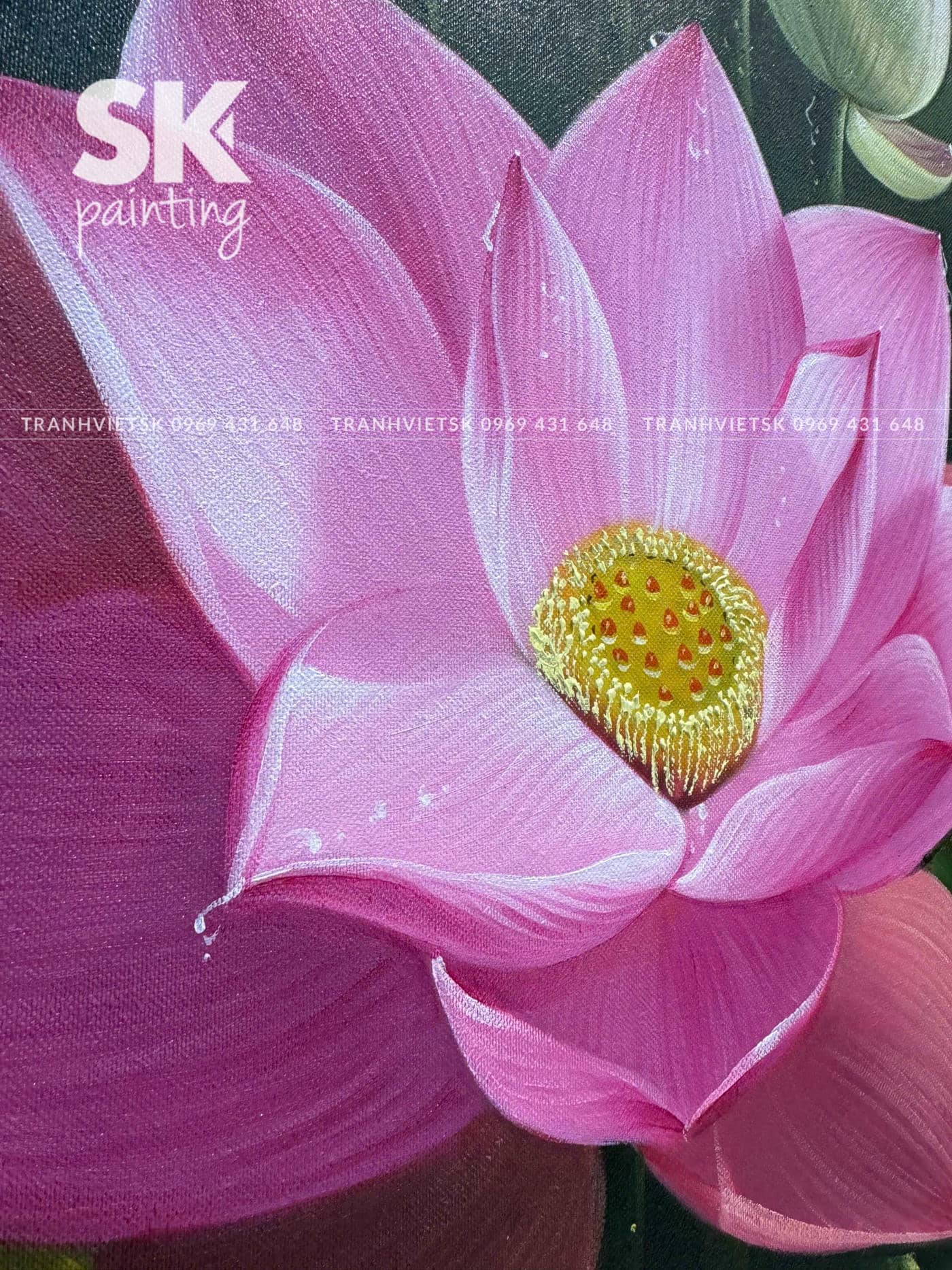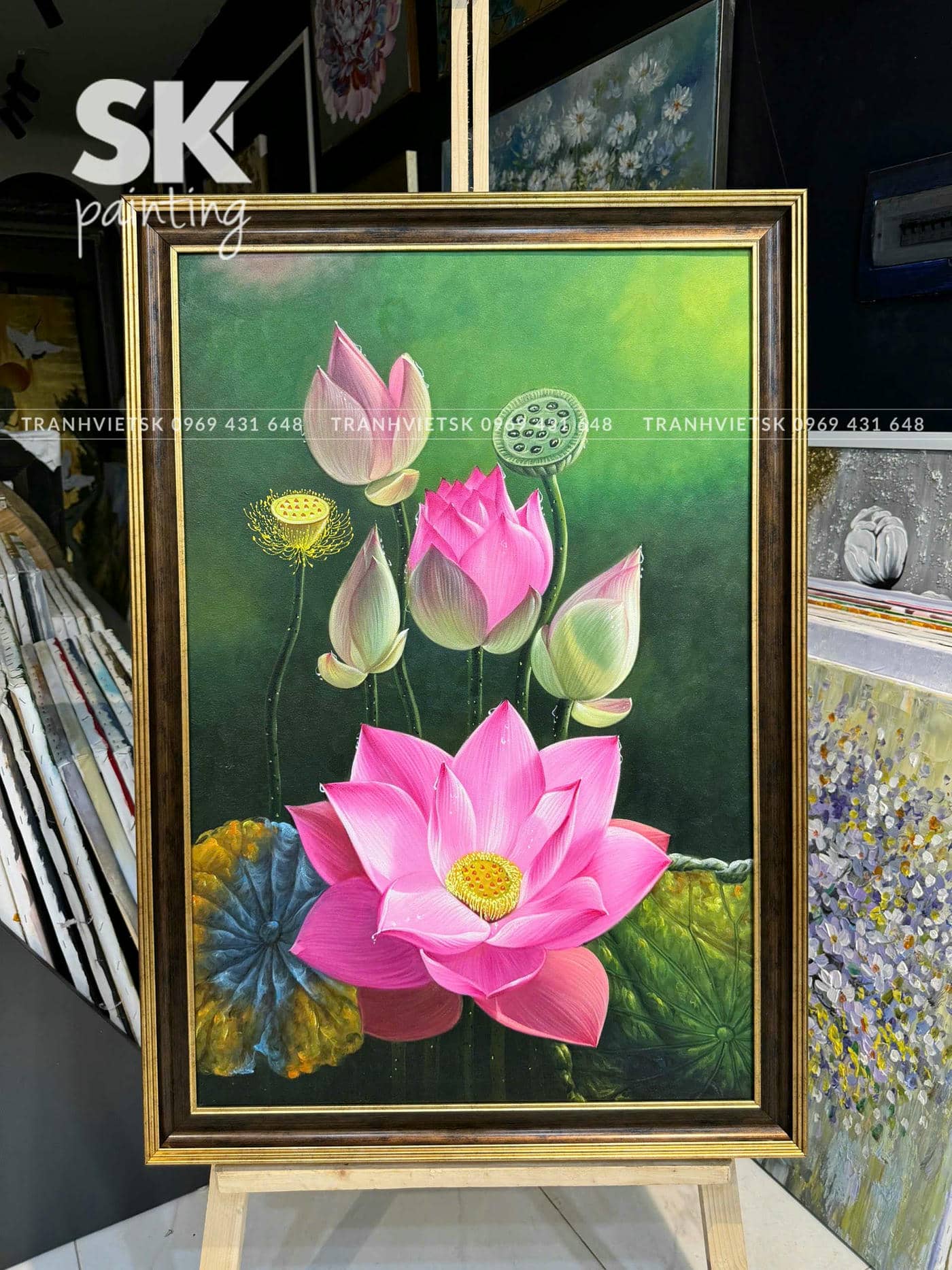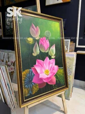 Hồng Liên An Phước – lòng tranh 60x90cm