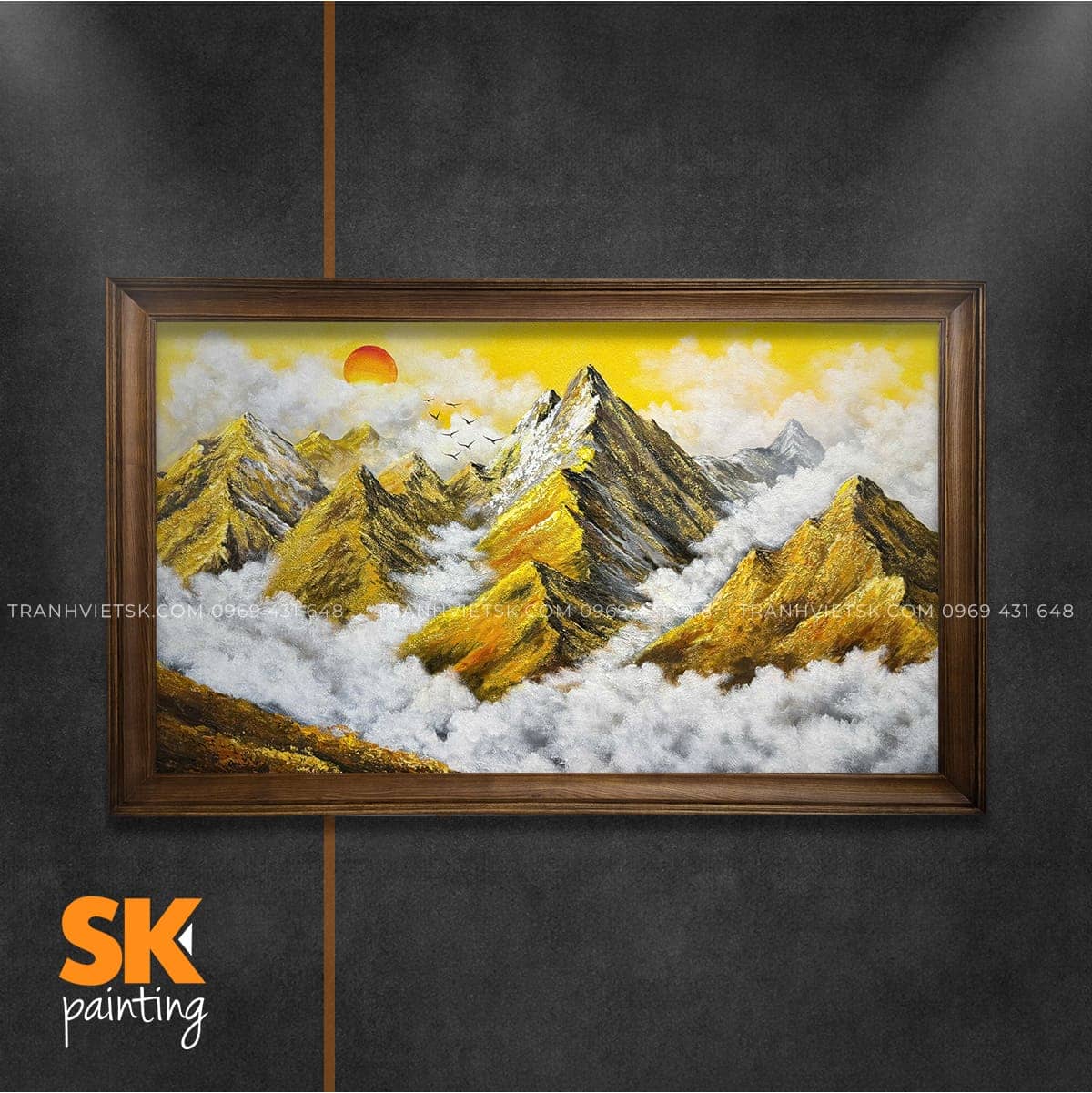 “Kim Sơn Nhật Hạ” không chỉ là một bức tranh phong cảnh đơn thuần, mà còn là sự kết tinh của nghệ thuật tranh sơn dầu vẽ tay, kỹ thuật dát vàng thủ công tinh xảo và chiều sâu cảm xúc của người nghệ sĩ. Đây là một tranh sơn dầu xứng đáng hiện diện trong bất kỳ không gian nào đề cao tính thẩm mỹ, sự sang trọng và giá trị tinh thần bền vững.
