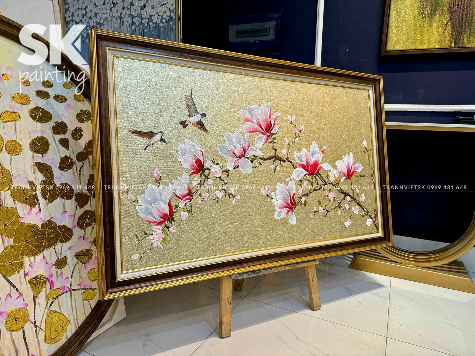 Tranh được vẽ hoàn toàn bằng tay 100% bằng sơn dầu/ acrylic Pebeo của Pháp