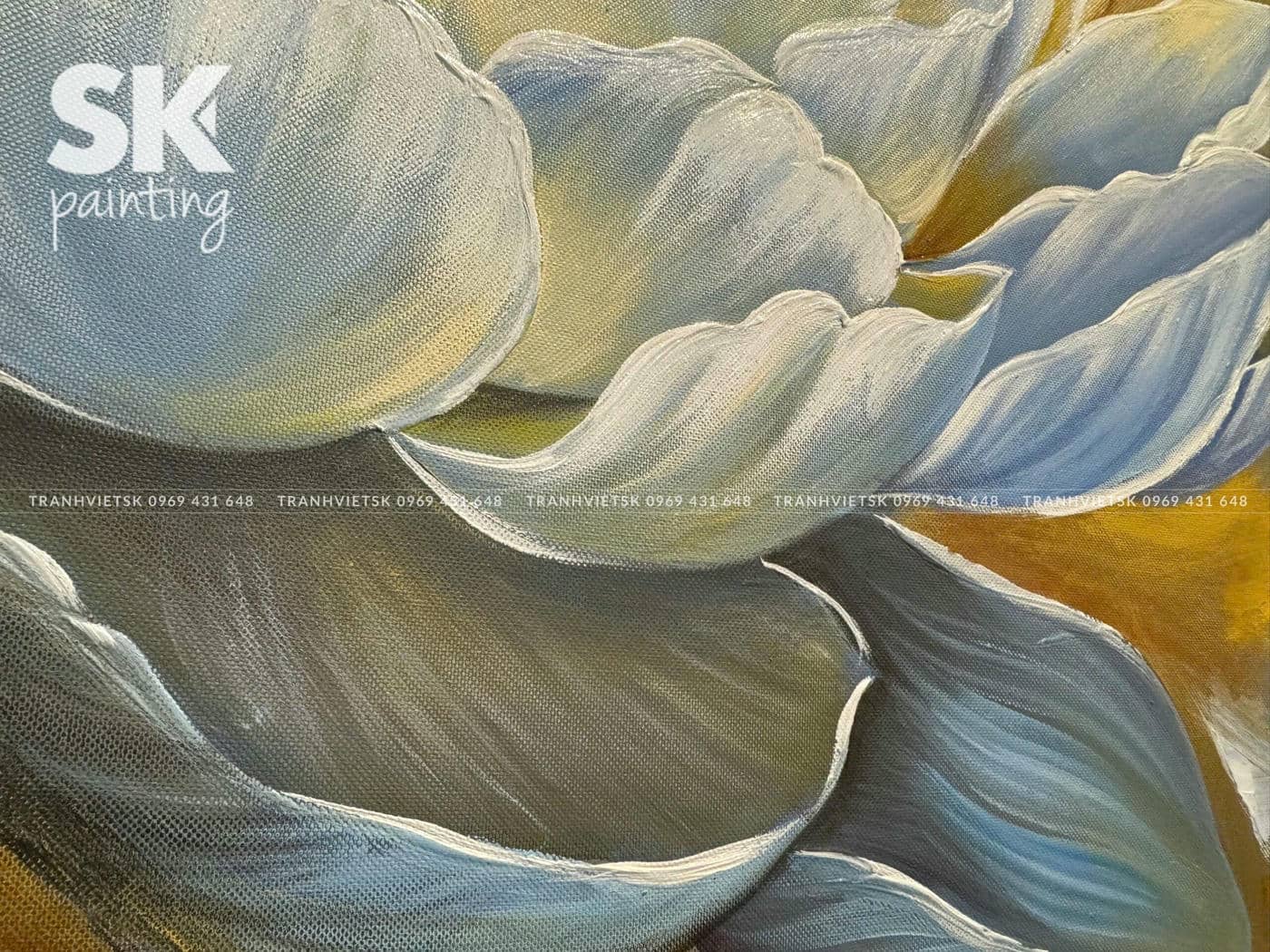 Bạch Hồng Kim An - tranh dát vàng lá Ý 24k - lòng tranh 60x90cm