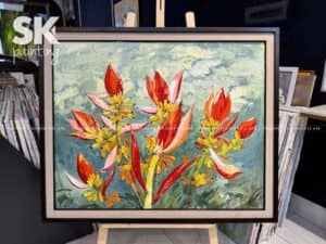 Trong thế giới hội họa hiện đại, tranh sơn dầu không chỉ là một thể loại nghệ thuật có giá trị lâu dài, mà còn là kênh thể hiện sâu sắc nội tâm, cảm xúc và triết lý sống của người nghệ sĩ. Họa sĩ Sơn Phạm, với phong cách đặc trưng đậm chất Việt và kỹ thuật xử lý chất liệu điêu luyện, đã mang đến cho người thưởng thức một tác phẩm đặc biệt mang tên “Phi Vũ Hoàng Hoa” – bức tranh lấy cảm hứng từ loài hoa chuối rừng.