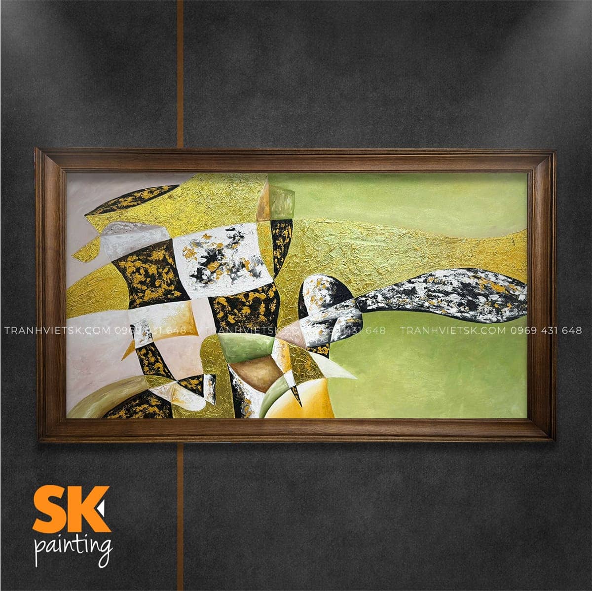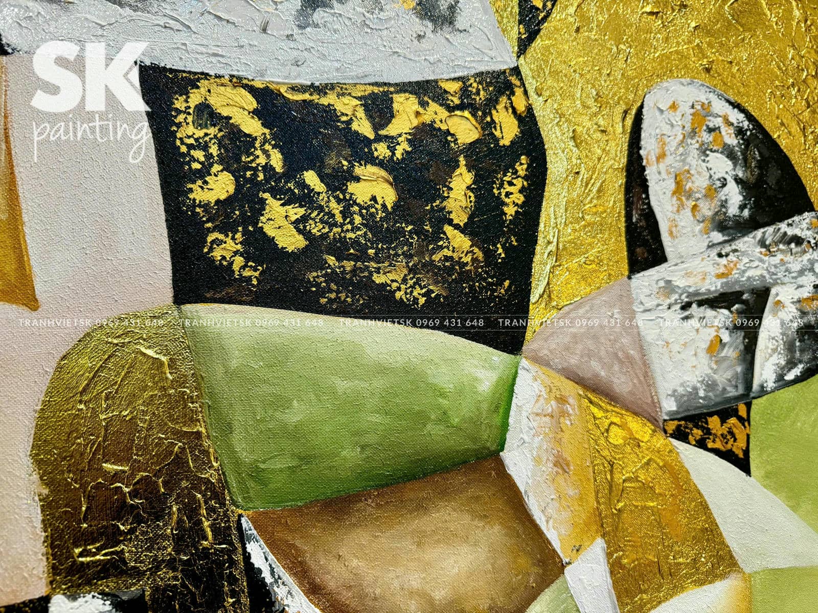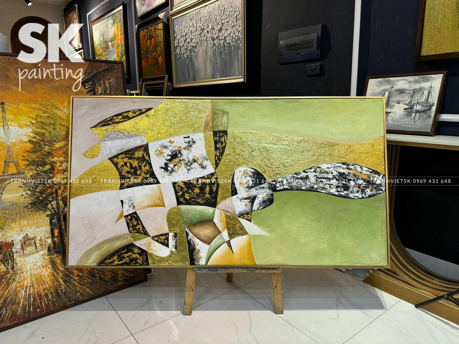 Trong thế giới nghệ thuật đương đại, tranh sơn dầu vẽ tay đang dần trở thành lựa chọn hàng đầu của những người yêu cái đẹp và mong muốn sở hữu những tác phẩm nghệ thuật độc bản. Trong số đó, “Phú Vượng Kim An” – một tác phẩm tranh sơn dầu của họa sĩ Sơn Phạm, không chỉ gây ấn tượng mạnh nhờ bố cục trừu tượng lạ mắt mà còn tạo dấu ấn sâu đậm bằng chất liệu đẳng cấp: sơn dầu Pebeo cao cấp của Pháp kết hợp dát vàng lá 24k từ Ý.