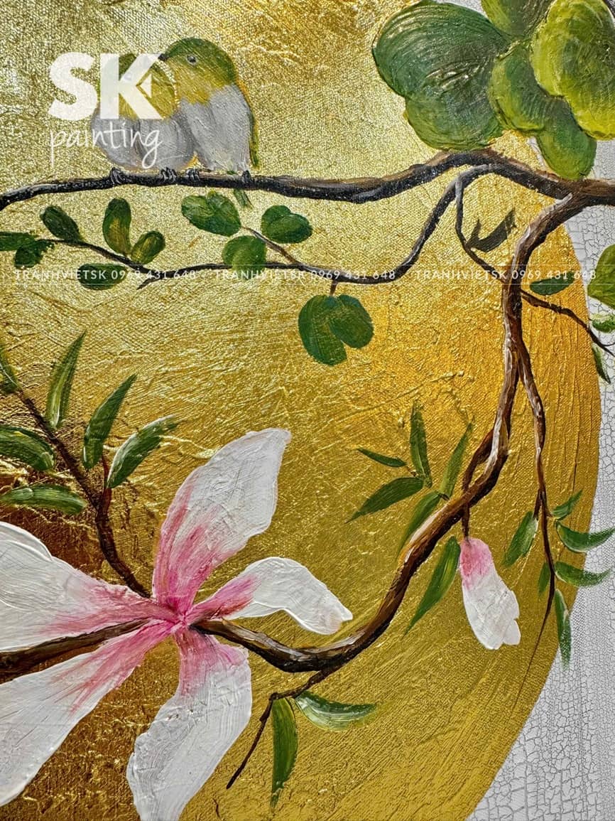 Uyên Ương Chào Xuân – lòng tranh 70x70cm