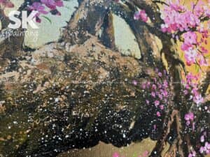 Sơn dầu Pebeo (Pháp) – dòng sơn cao cấp cho màu sắc sâu, độ bám cao và khả năng giữ màu bền vững theo thời gian. Lớp sơn dày tạo hiệu ứng ba chiều đặc sắc, khiến từng cánh hoa, từng nhánh cây như sống động trong mắt người xem.