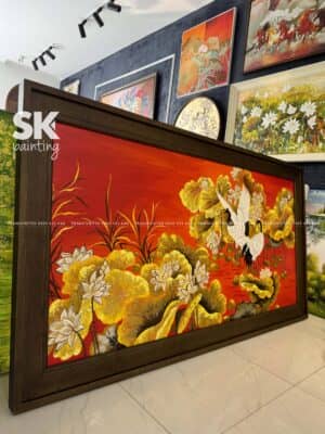 1. Tranh sơn dầu “Song Hạc Liên Hoa” – Sự giao thoa giữa thiên nhiên thanh cao và biểu tượng cát tường