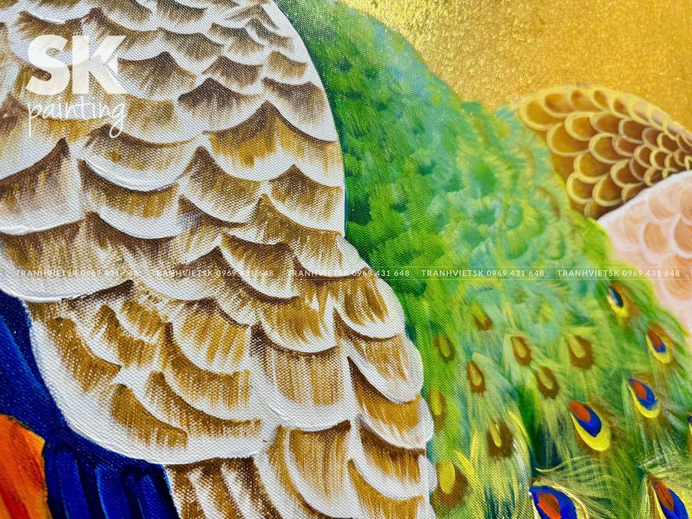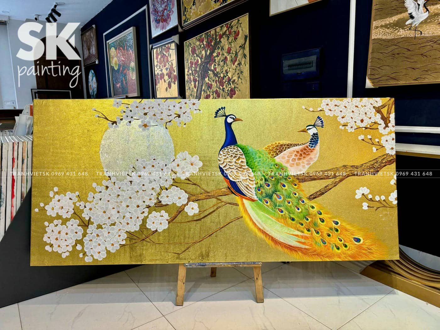 Bạch trà khoe sắc - tranh dát vàng lá Ý 24k - lòng tranh 70x70cm