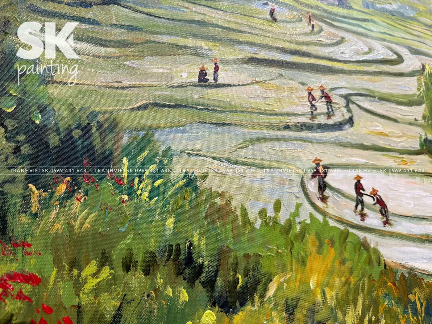 Tranh được vẽ hoàn toàn bằng tay 100% bằng sơn dầu/ acrylic Pebeo của Pháp