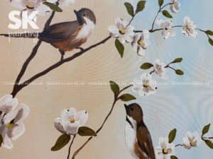 Bạch trà khoe sắc - tranh dát vàng lá Ý 24k - lòng tranh 70x70cm