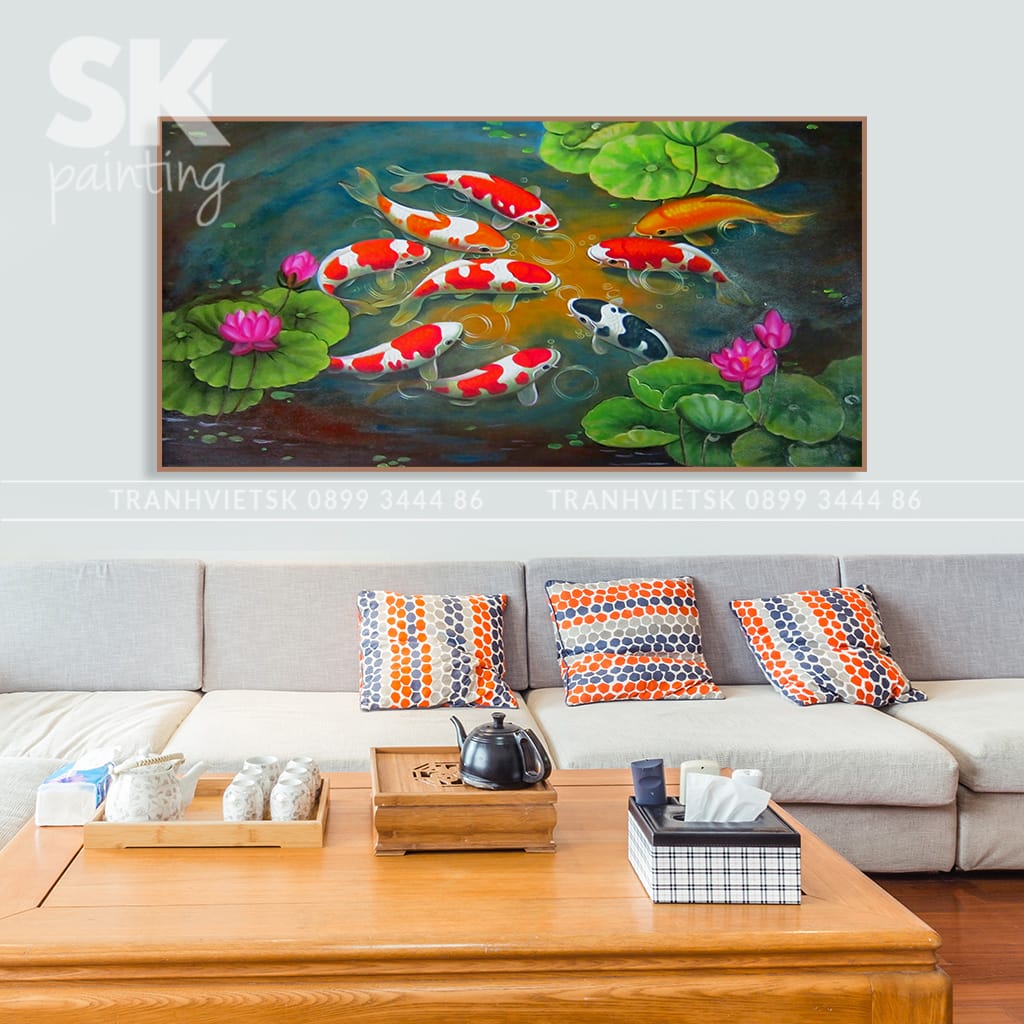 Treo bức tranh thuận buồm xuôi gió, tranh cá chép hoa sen tượng trưng cho sự thịnh vượng, thành công